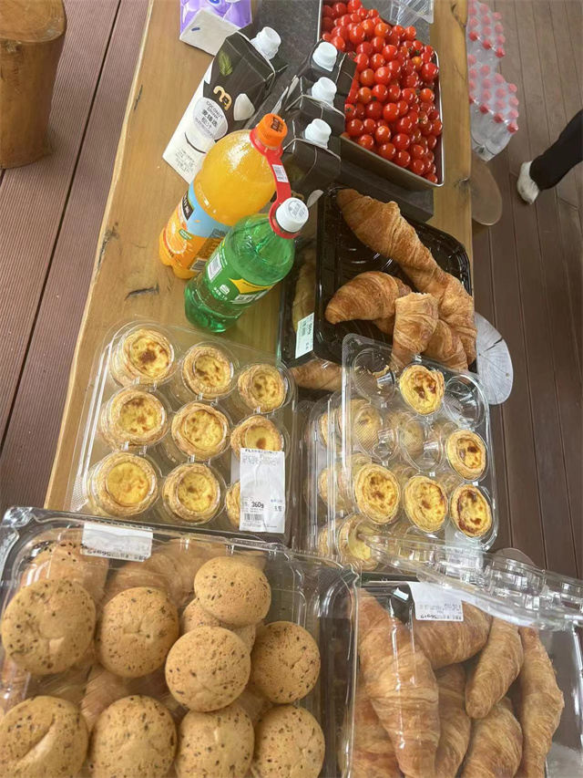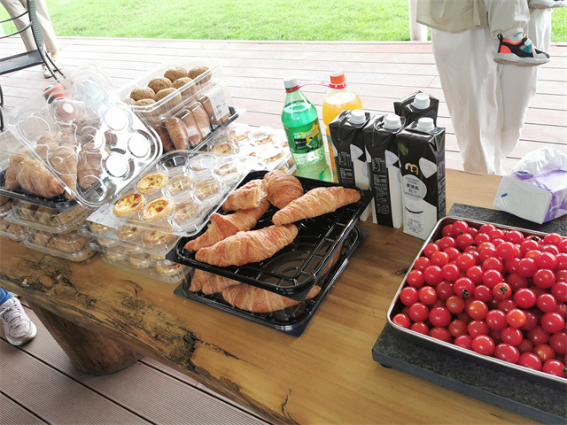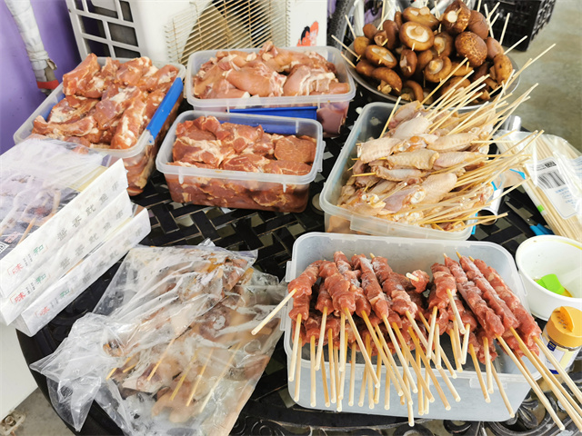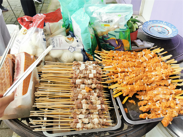 炉火正旺、食材足量。在近10位保障人员的辛苦工作下,新鲜、卫生、可口的肉、菜、水果等,排列的整齐有序,供大家随意挑选、尽情享用!
