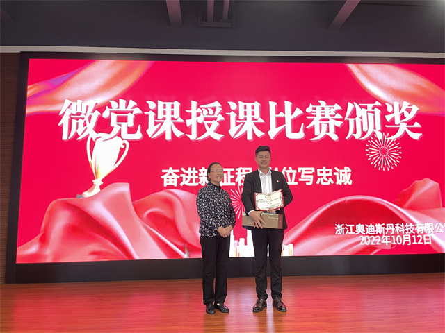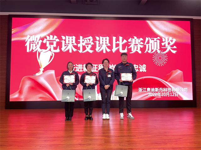 2022年10月12日下午,浙江奥迪斯丹科技有限公司开展“奋斗新征程、岗位作贡献”微党课授课比赛。