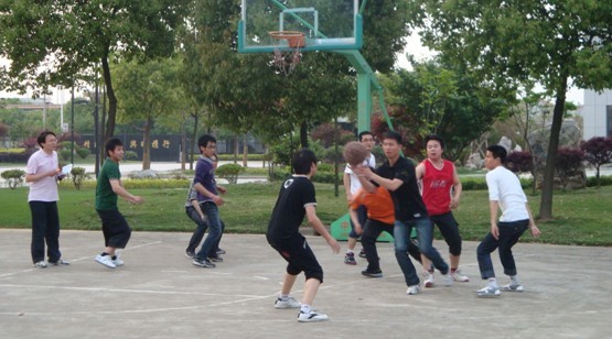 比赛中,双方队员实力相当,奋力拼杀,你追我赶,打得热汗淋淋。每个队员都积极跑位,为队友作掩护,还时不时有精妙的传球、漂亮的配合和精彩地上篮。比赛中也有意外跌倒的发生,可是每个人并没有因此影响了比赛情绪,队员之间拍拍肩膀相互安慰一下接着再来。一场场紧张激烈、扣人心弦的角逐,不断的在篮球内上演,场外的啦啦队同事也饶有兴致地观看着比赛,为参与比赛的同志打气、喝彩,与场内的气氛融为一体!