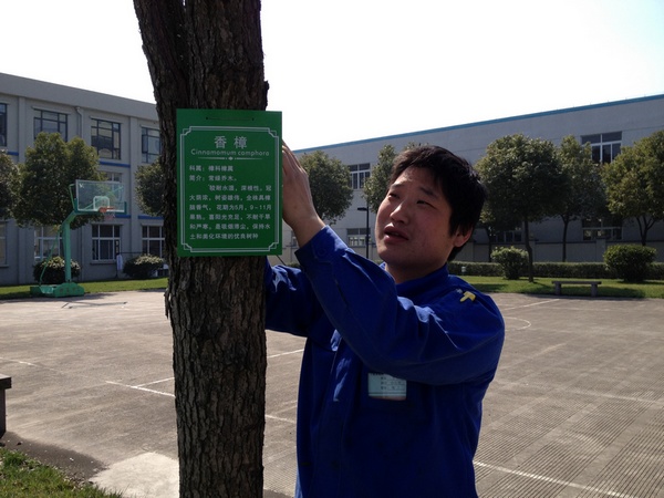 折腾阳光和煦、春意盎然,我们美丽的公司也早已是莺啼燕啭、春柳招展。当日下午两时许,我公司工程部及办公室部分后勤人员热火朝天地开始分工协作,绿色行动人员分为三组,其中工程部的应成伟以及李林负责挂树牌,公司里的每一类树木都被佩戴上了专属的树牌,办公室保洁组的杨胜英及胡才根在主管张富云的带领下,将草坪上的残枝败叶清理得干干净净。另外保安队长罗斌及办公室的王洪将草坪上的石板重新安置,使草坪更加平整、道路更加方便。在和煦的阳光下,泥土与欢声笑语一同飞扬,汗水随着满腔热血共同挥洒,现场一派热火朝天的劳动景象,大家忙得不亦乐乎。