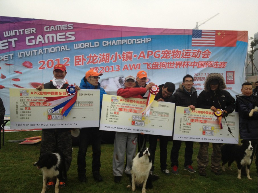 此次比赛是飞盘狗世界杯中国赛区的总决赛和南京宠物公开赛两项比赛,训犬师阮亦斌带领可爱机敏的牧羊犬聪聪一举获得2013年飞盘狗世界杯中国赛区总冠军,俱乐部经理陈琦带领聪聪获得南京宠物公开赛冠军。这个成绩来之不易,是俱乐部倾注了几年的心血,通过刻苦训练获得的。