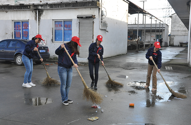 2015年11月7日,上午8点从公司出发,在团委书记杨艳玲和研发副主任吴波的带领下,奥迪斯丹的团员代表许倩、张巧虹、高兰芳到达阮家村。首先根据规划好的责任区域进行了分组,然后大家拿好扫把等清扫工具对阮家村地面进行了彻底清扫。