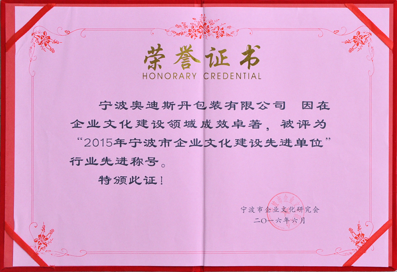 6月5日,在宁波企业家协会组织的2016年宁波市企业文化节开幕式暨宁波市企业文化高峰论坛会。我司凭借着公司自身深厚的企业文化底蕴、杰出的企业管理、领先的行业地位优势,在众多的参选企业中脱颖而出,荣获“2015年宁波市企业文化建设先进单位”行业先进称号,能够在此次活动中获得殊荣,与我们一直弘扬并贯彻的企业文化息息相关。