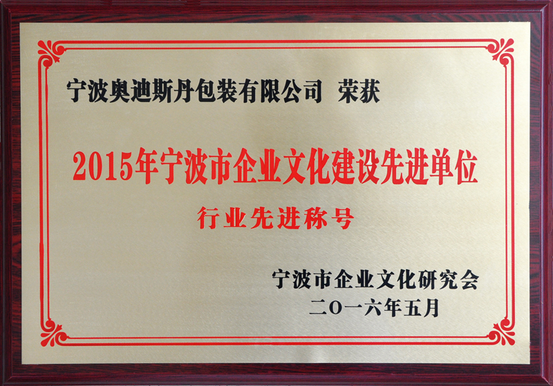 喜报:我司荣获2015年宁波市企业文化建设先进单位行业先进称号
