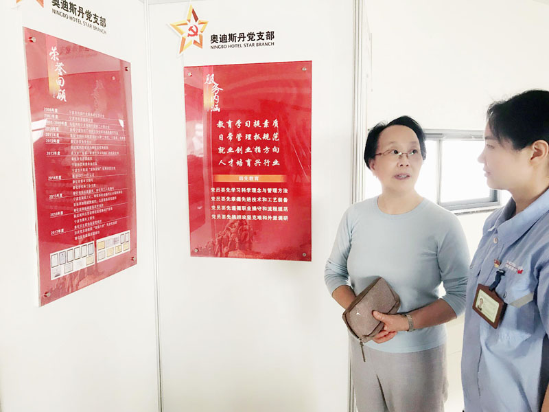 浙江奥迪斯丹纸业有限公司是奉化区首批“双共工程”试点单位,是江口街道党建示范基地。公司党支部书记戴凤娥、党支部副书记寇金玉紧跟上级党委工作部署,不断创新思路,积极组织全体党员开展各项党的教育实践活动,组织党员签订《廉洁自律承诺书》,积极探索党组织和党员发挥作用的方式和渠道,开设党支部谈心室、分发政治生日卡、成立工会心灵开锁组、成立激励互助基金,将党建工作渗透到各项工作中。