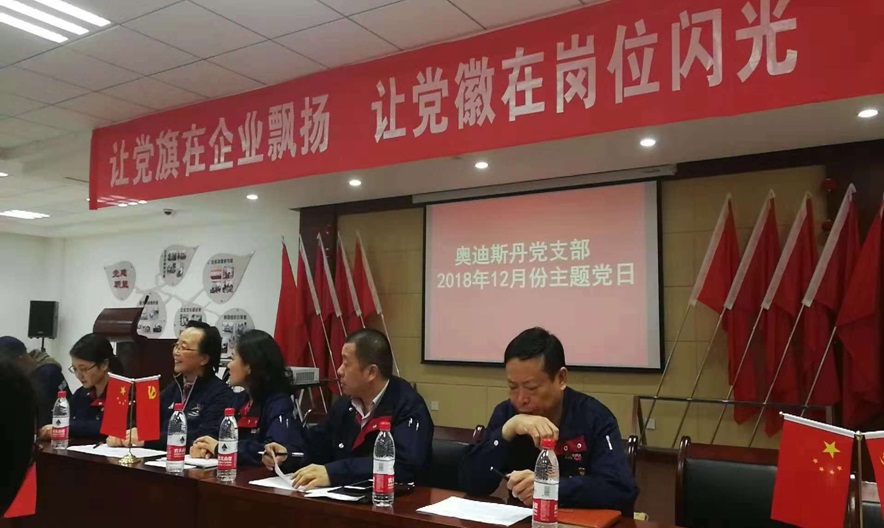 2018年12月3日18:30,宁波奥迪斯丹包装有限公司党支部举行了今年最后一个主题党日活动,活动共有25名党员、一名入党积极分子出席,活动历时2小时。此次活动共有重温入党誓词、学习先进事迹、批评与自我批评、党员民主评议等四个部分组成。