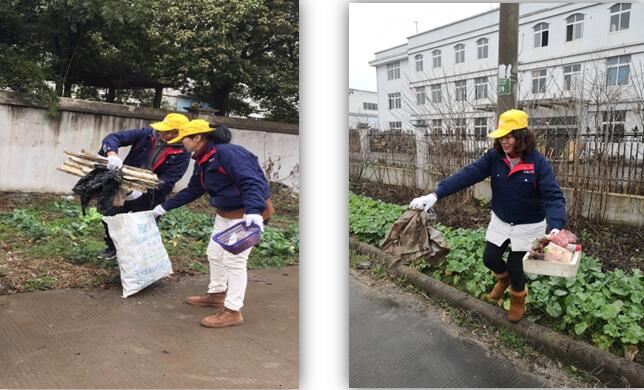 奥迪斯丹员工们带着不同颜色的帽子有条不紊的帮助村民清理街道,大家有说有笑,不知不觉中就把街道清理干净了。以戴书记为核心的团队像一个大家庭一样,组成队伍沿途到达双马村、何家村、仓基村、方桥村等村落为那里的村民美化环境,村民们都非常开心。