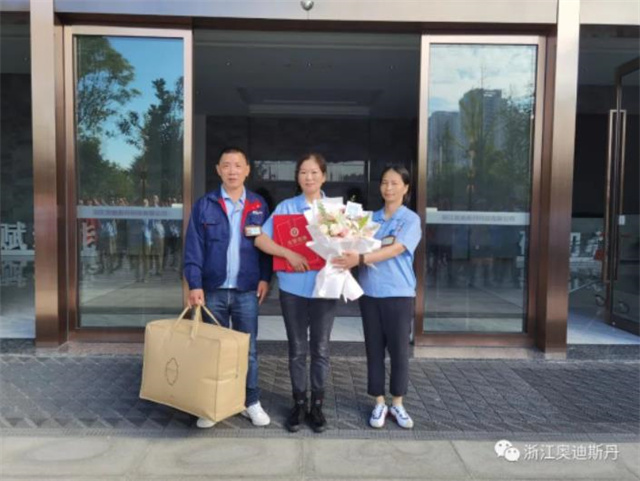 仪式现场气氛热烈,温暖感人。首先由公司工会主席吴晓青致词。吴主席对张金芳在公司工作10年勤勤恳恳、以身作责,取得的业绩给予了肯定,对她在福利团队中,经常加班加点生产,保质保量出货,为公司发展建设做出的贡献给予了赞许。感谢她10年如一日恪尽职守、爱岗奉献的职业品格,感谢她坚持到底、始终如一的职业操守。