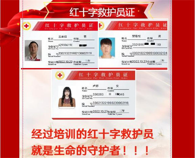 经过一天的培训,公司15名学员全部通过理论、实操考试,并取得“红十字救护员证”。员工们说:“通过学习红十字应急救护知识,掌握了初级现场急救技能,在今后,伤害一旦发生,既能自救,也能帮助他人,公司开展这样的培训很实用,也是关心关爱员工的切实表现。”